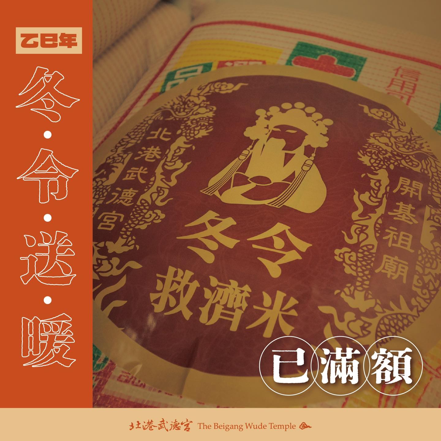 乙巳年冬令送暖已達標!即刻起截止受理認捐,後續由本宮統一採購,委請鎮公所發放,再次感謝各界善信共襄盛舉,布施植福,濟助貧苦,功德無量!