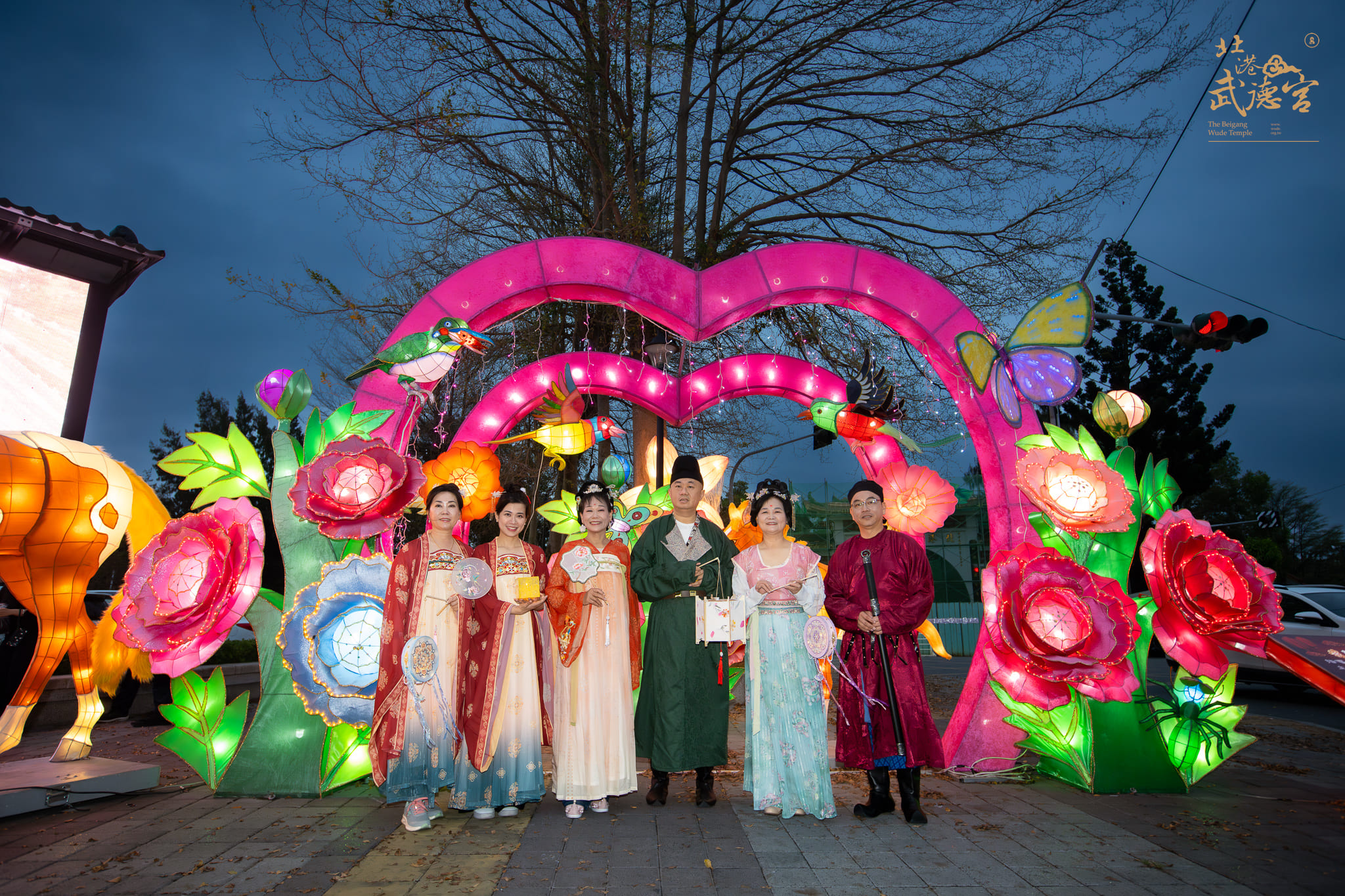 新唐社乃乙巳年上元成立,迄今已屆週年。適逢今年北港「潮光潮」燈會,特於本鎮擴大籌辦提燈踩街活動。由主委林安樂偕同雲林縣副縣長謝淑亞、文觀處處長謝明璇、鎮長蕭美文、北港鎮民代表黃美蘭暨全體社員,於正殿團拜後便正式啟程。全員身著華美唐服,提燈漫步於北港各燈區。沿途由鎮長悉心解說花燈的創作意涵與文化背景,此行不僅充分展現了傳統唐服之美,更成功促進了傳統文化與地方觀光的深度交流,為新唐社成立週年畫下了圓滿且深具意義的句點。