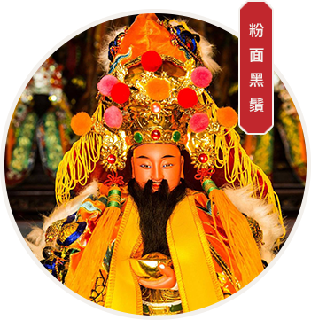 本宮分靈金身,武財神分為黑面黑鬚、黑面白鬚、粉面黑鬚三種法相(一尺三與一尺兩種吉寸)、座虎武財神(一尺三與一尺六兩種吉寸)、需奉請一對之利市仙官與招財使者以及黑虎將軍。奉請金身務必親臨財神祖廟正殿,向所欲奉請之武財神恭請得三聖筊,或於濟世日來請示武財公指派,待允諾,則可繳付緣金恭請財神爺於貴所安奉。隨著奉請者之因緣與擲筊結果,將迎請到不同金身法相。