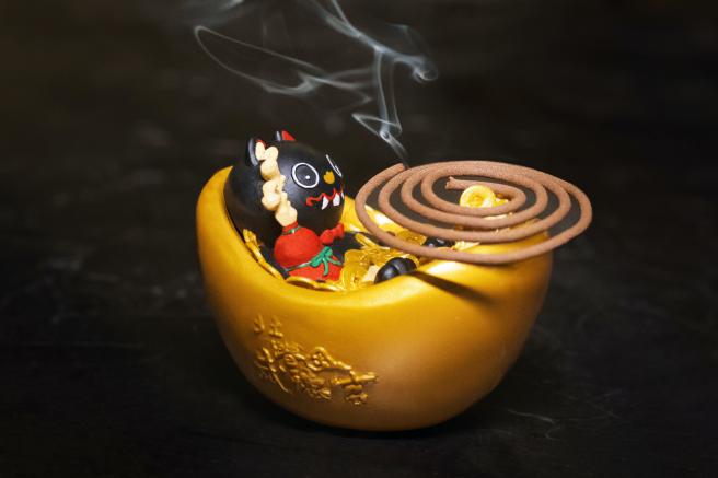 黑虎抱葫蘆倘佯於元寶銅錢之中,造型討喜,線香、盤香兩用香座設計,可隨用香習慣自由運用,元寶底座內含財神祖廟的香灰,神力加持,讓財氣隨著裊裊香煙充斥空間!