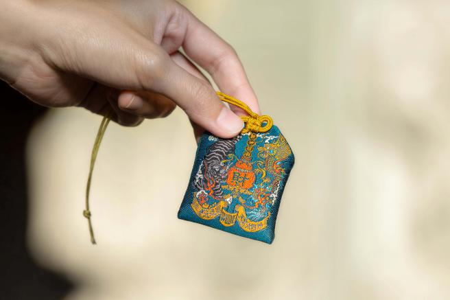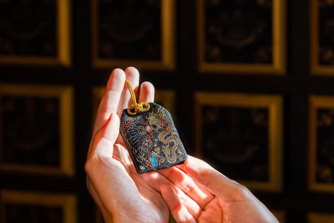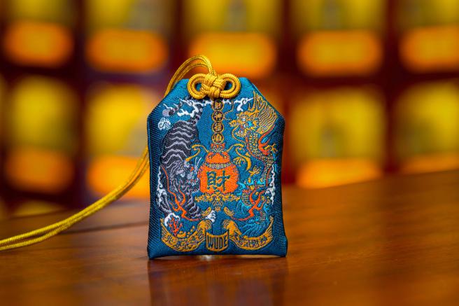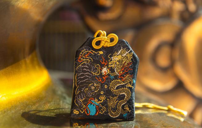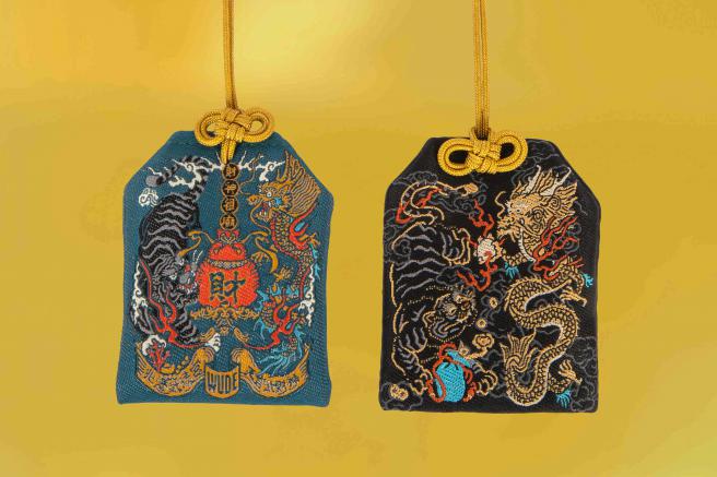 龍與虎,分別象徵財與福,以龍虎意象設計而成的香火袋,做工精緻,精細勾勒出龍虎威猛形象,隨身攜帶庇佑財源廣進,平安康泰。