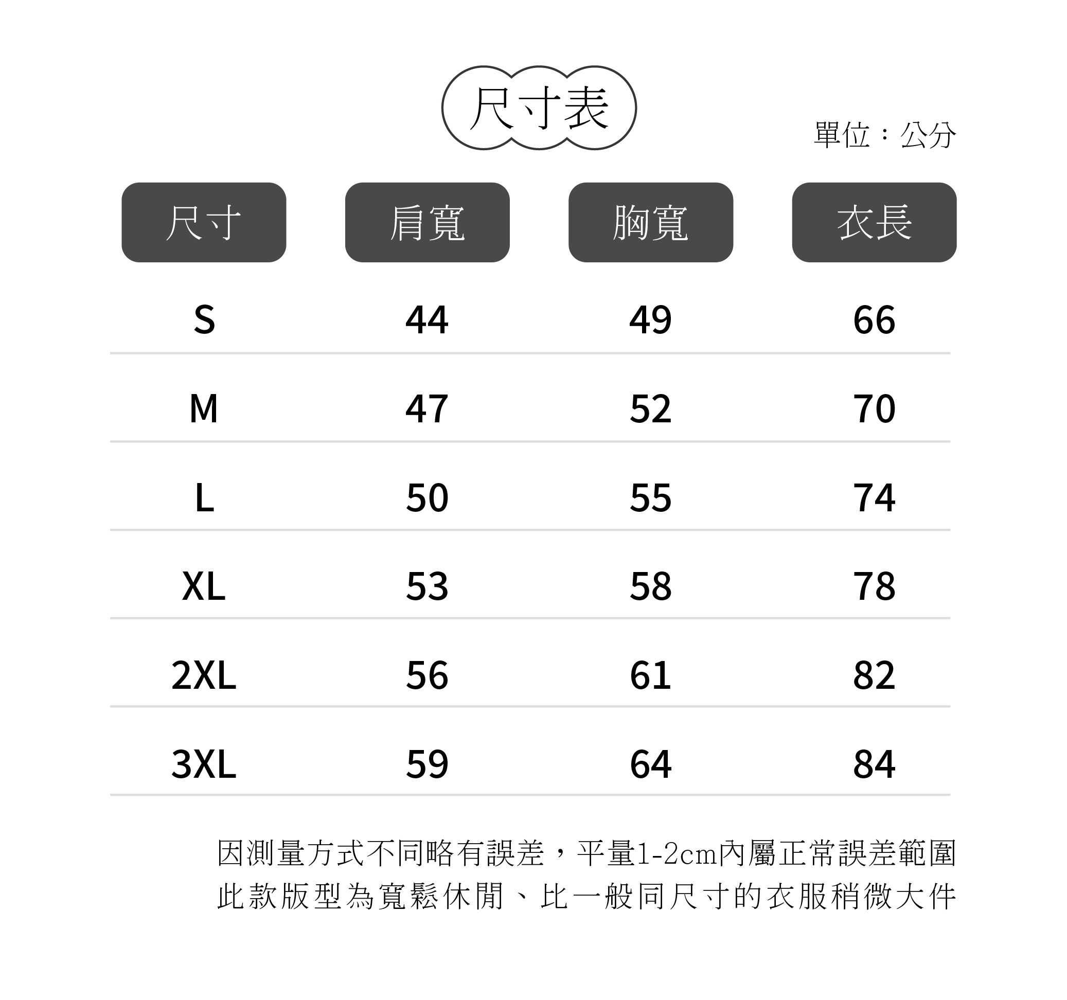 ・ S~3XL六種尺寸|各種體型,都能找到適合的版型